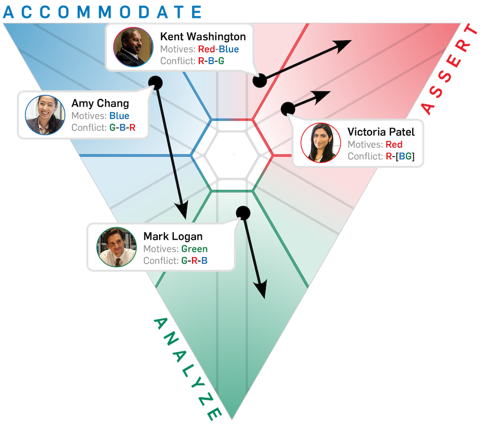 The SDI also shows your Conflict Sequence, which explains how motives change during conflict. Understanding the Conflict Sequence, which is part of core personality, helps individuals and teams more quickly identify early signs of conflict and resolve it more effectively.